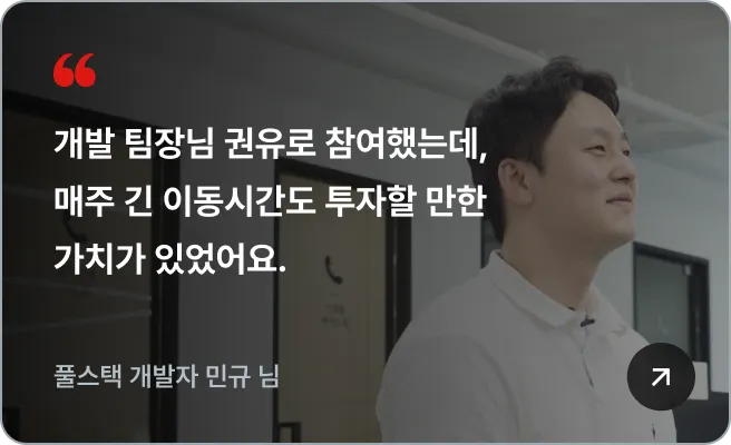 “나와 비슷한 연차의 개발자들이 어떤 노력을 하며 살아가는지 알 수 있는 좋은 기회였고 회사 다니면서 잊고 있던 개발과 협업에 대한 즐거움을 다시 일깨울 수 있는 경험이었습니다!”